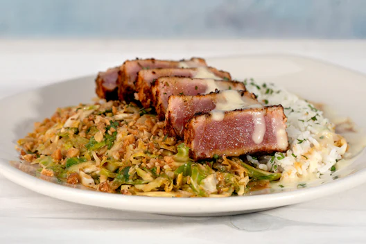 Alaskan Cod with three warm tortillas, shredded lettuce, diced tomatoes, cilantro lime sauce.