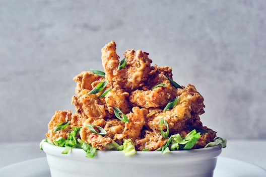 Sushi-grade tuna, seared rare and sliced, with sashimi sauce and tempura flakes. Served with wasabi, soy sauce and a sriracha drizzle.